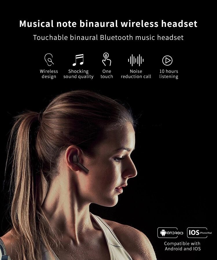 Tws Earbuds Bt 5.0 White IP54 Waterproof Binaural-Black True Wireless Earphone